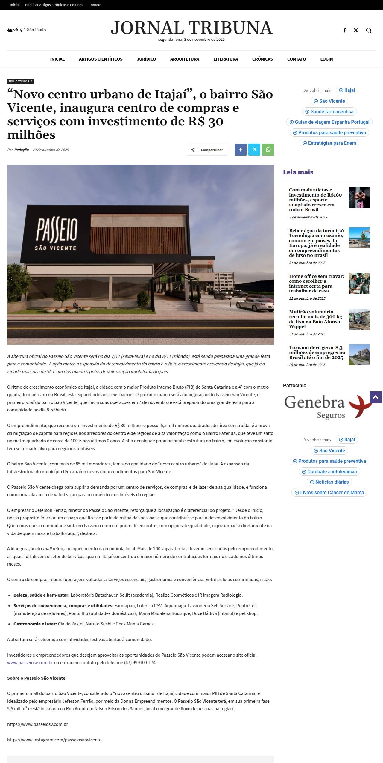 https://jornaltribuna.com.br/2025/10/novo-centro-urbano-de-itajai-o-bairro-sao-vicente-inaugura-centro-de-compras-e-servicos-com-investimento-de-r-30-milhoes